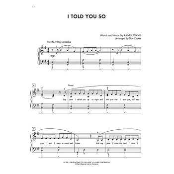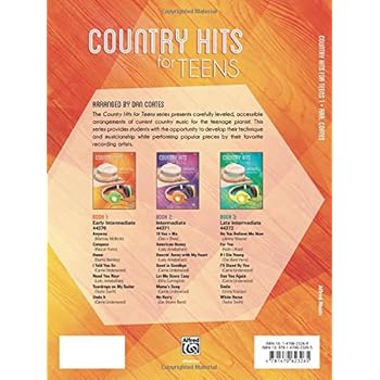 Country Hits for Teens presents carefully leveled, accessible arrangements of current country music for the teenage pianist. This series provides students with the opportunity to develop their technique and musicianship while performing popular pieces by their favorite country recording artists. Titles: Anyway (Martina McBride) * Compass (Rascal Flatts) * Home (Dierks Bentley) * I Told You So (Carrie Underwood) * Need You Now (Lady Antebellum) * Teardrops on My Guitar (Taylor Swift) * Undo It (Carrie Underwood).