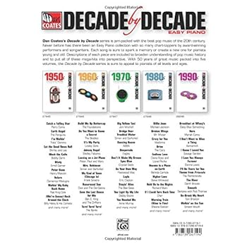 Dan Coates's Decade by Decade series is jam-packed with the best pop music of the 20th century. Never before has there been an Easy Piano collection with so many chart-toppers by award-winning performers and songwriters. Descriptions of each piece are included to broaden understanding of pop music history and to put all of these megahits into perspective. Each song also includes lyrics and chord symbols. With so many years of great songs, the Decade by Decade series is sure to appeal to pianists of all levels and ages. Titles: A Certain Smile * A Rockin' Good Way (To Mess Around and Fall In Love) * Arrivederci Roma * The Best is Yet to Come * Blueberry Hill * Cara Mia * Catch a Falling Star * Earth Angel * Endlessly * Fly Me to the Moon * Get Me to the Church on Time * Heart * Hey There * High Noon * Hold Me, Thrill Me, Kiss Me * I Could Have Danced All Night * I Left My Heart in San Francisco * I Wanna Be Around * I'm Walkin' * It's Just a Matter of Time * Just in Time * Let the Good Times Roll * Love Is a Many Splendored Thing * Mack the Knife * Mala Femmena (Angel with a Devil's Heart) * Misty * Non Dimenticar * Peter Gunn * Rags to Riches * (We're Gonna) Rock Around the Clock * Rockin' Robin * Satin Doll * See You in September * Sh-Boom (Life Could Be a Dream) * Sixteen Candles * Thank Heaven for Little Girls * That's Entertainment * Theme from A Summer Place * This Bitter Earth * Till * Together, Wherever We Go * Volare * Walkin' My Baby Back Home * Who's Sorry Now.